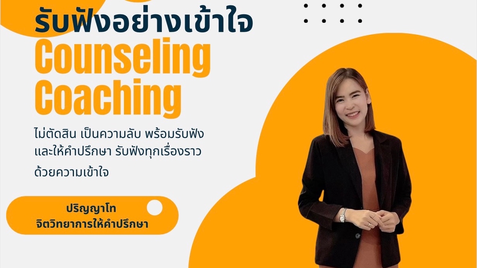 ยินดีรับฟังและให้คำปรึกษา เป็นความลับในพื้นที่ปลอดภัยของคุณ ให้คุณเข้าใจตนเองและค้นพบตัวตนที่แท้จริงจากสถานการณ์ที่เจออยู่ ด้วยความเข้าใจ โดยไม่ตัดสิน ใช้ศาสตร์การให้คำปรึกษา ไม่ว่าเรื่องราวที่คุณเจออยู่จะหนักขนาดไหน อย่าเก็บไว้คนเดียว🤍 ชีวิตของคุณ หัวใจของคุณมีค่า คุณไม่จำเป็นต้องอยู่กับปัญหาและความเจ็บปวดอีกต่อไป การให้คำปรึกษาจะเยียวยาหัวใจของคุณให้เข้มแข็งขึ้น แค่ปรับความคิด ชีวิตก็เปลี่ยน ลุกขึ้นมาหาทางออกร่วมกัน กระบวนการ 1. แนะนำตัว แจ้งเรื่องที่ต้องการพูดคุย ปรึกษา 2. เลือกแพกเกจ นัดหมายวัน/เวลา 3. ชำระเงินผ่าน Fastwork 4. พูดคุย ให้คำปรึกษา ทาง Fastwork call หรือ Google Meet Link
