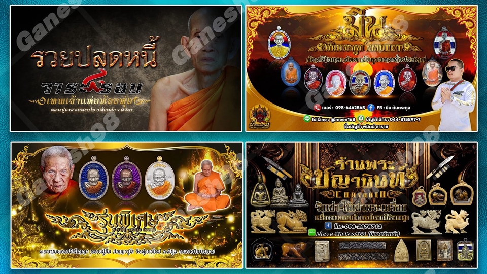ร้านGanesh98 รับออกแบบสื่อโฆษณาวัตถุมงคลทุกชนิด ประสบการณ์ทำงานในสายงานนี้มามากกว่า 5 ปี และมีเพจ : รับแต่งภาพวัตถุมงคลพระเกจิอาจารย์ทุกรูปแบบ ได้งานที่มีคุณภาพ ทันสมัย เป็นกันเองค่ะ