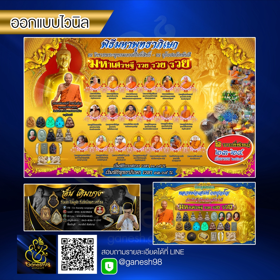 ร้านGanesh98 รับออกแบบสื่อโฆษณาวัตถุมงคลทุกชนิด ประสบการณ์ทำงานในสายงานนี้มามากกว่า 5 ปี และมีเพจ : รับแต่งภาพวัตถุมงคลพระเกจิอาจารย์ทุกรูปแบบ ได้งานที่มีคุณภาพ ทันสมัย เป็นกันเองค่ะ