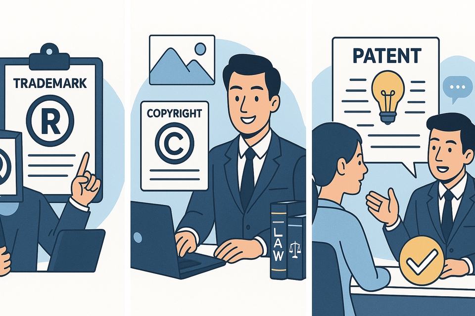 จดทะเบียนเครื่องหมายการค้า / สิทธิบัตร / ลิขสิทธิ์ โดยทนายความ