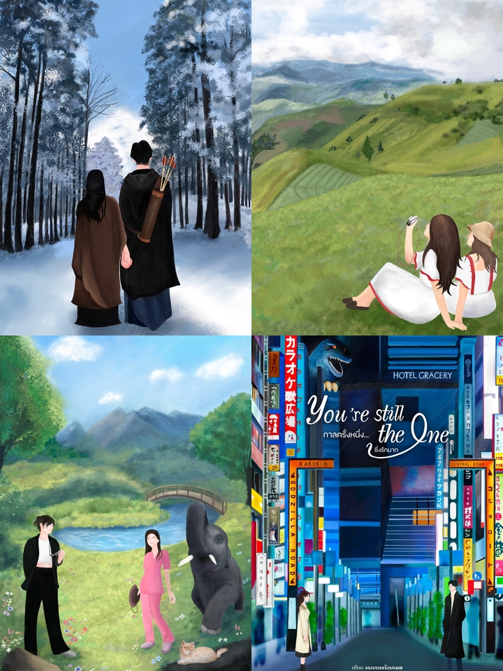 วาดภาพประกอบ ปกนิยาย ภาพวาดทิวทัศน์สีน้ำละมุนๆ digital painting