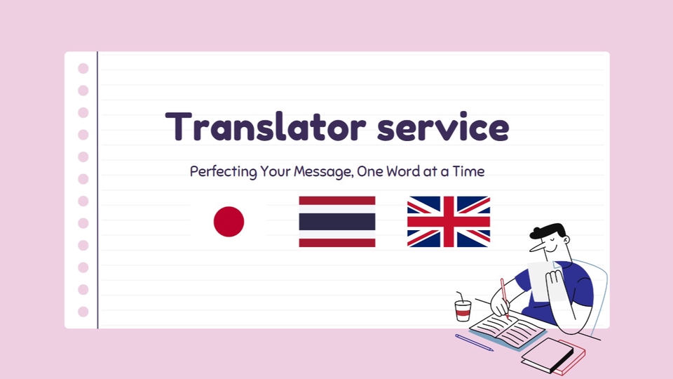 แปลภาษา อังกฤษ - ไทย ไทย - อังกฤษ ญี่ปุ่น - ไทย ไทย - ญี่ปุ่น ประเภทของเอกสาร คู่มือการทำงานต่างๆ เอกสารทั่วไป งานวิจัย และอื่นๆสามารถส่งมาให้ตรวจสอบดูก่อนได้ครับ สามารถแกไขได้จนเป็นที่น่าพอใจสำหรับลูกค้าครับ ใช้เวลา 1 - 2 วันในการแปล(ตามความเหมาะสมของงาน) และจะทำการหาข้อมูลเพิ่มเติมเพื่อแปลให้ตรงบริบทของบทความแน่นอนครับ ลูกค้าแจ้งรายละเอียดงาน และ ช่วงเวลา ประเมินงาน ส่งมอบงานและติดตามผลงาน แก้ไขตามความต้องการของลูกค้า(ถ้ามี) ส่งมอบงานที่สมบูรณ์