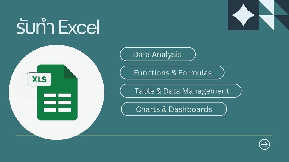 รับทำ Excel (คีย์ข้อมูล, สร้างตาราง, ผูกสูตร, สร้างกราฟ, วิเคราะห์ข้อมูล เป็นต้น)