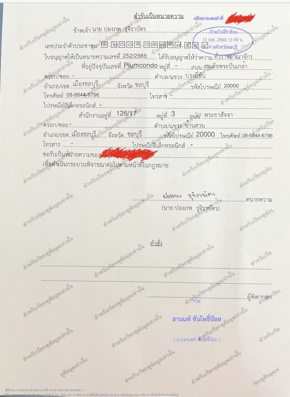 ฿2,000เอกสารสามารถนำไปใช้และมีผลในทางกฎหมาย บังคับตามกฎหมาย ฟ้องศาลหรือยื่นต่อศาลได้