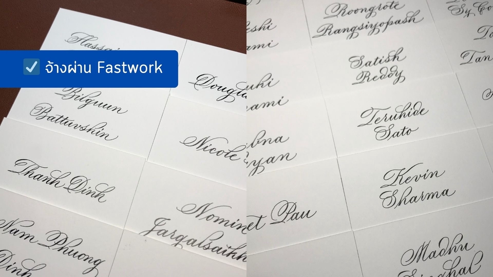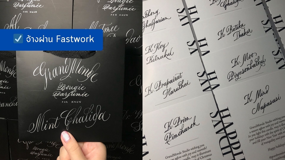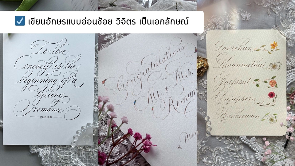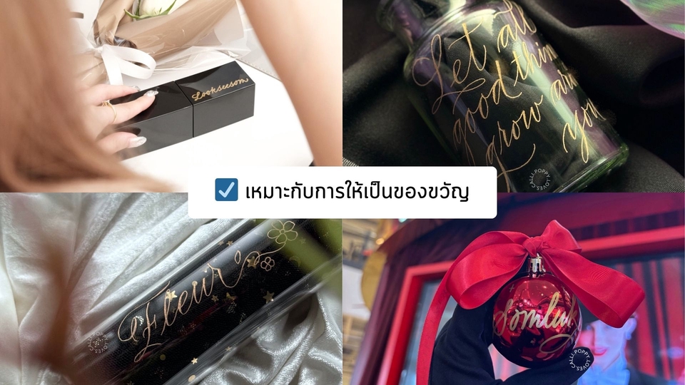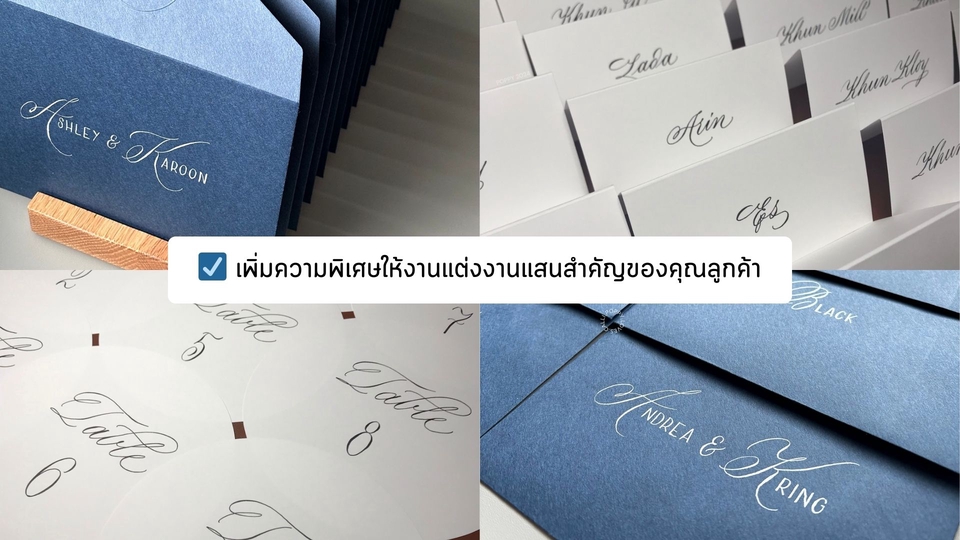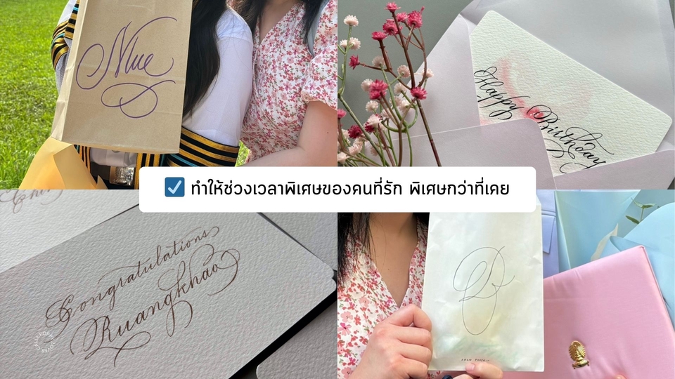 เขียนและแกะสลักข้อความ Calligraphy, เขียนการ์ด, เขียนซอง, ออกแบบ, ของขวัญทำมือ, บริการ Calligraphy
