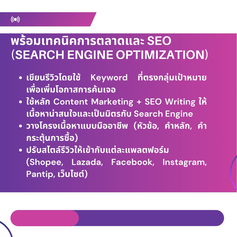 - • ใส่ Keyword SEO + จัดโครงเนื้อหาแบบดึงดูด
