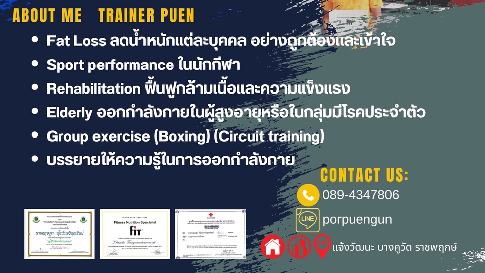 Personal trainer Sport Science: MU , SWU Experience:Fitness , Hospital , performance , Elderly , Rehab