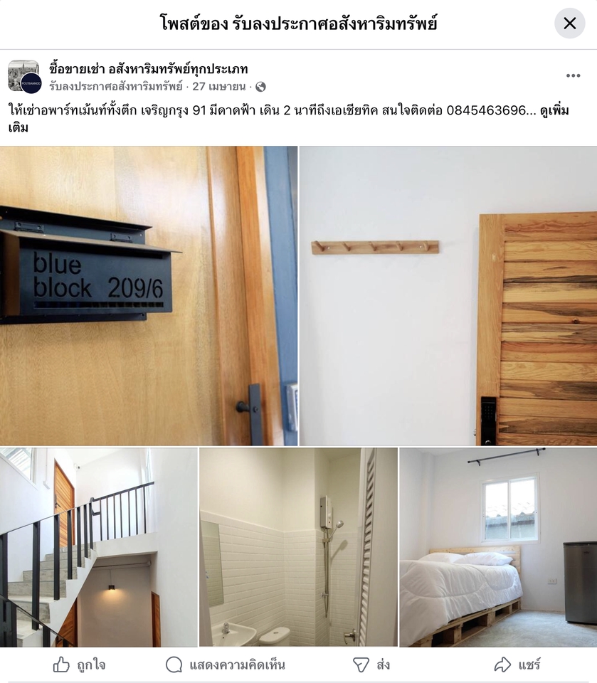 ลงประกาศ 1 ครั้ง 1 อสังหามีความบริการ 690 บาท