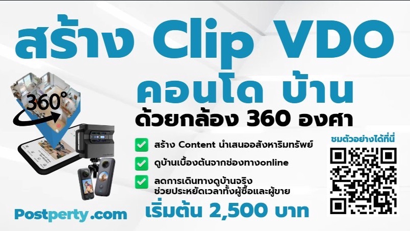 บริการถ่ายสถานที่ด้วยกล้อง360องศา สร้างภาพแบบ VR 360 เหมาะกับการขายอสังหาริมทรัพย์ ที่ช่วยลดการเปิดบ้านจริง ให้ลูกค้าดูบ้านอย่างละเอียดเหมือนได้เข้ามาดูในบ้านจริงผ่าน มือถือ พร้อมทำสื่อ Video รีวิวบ้านและออกแบบภาพกราฟิก (ทำให้ฟรีสำหรับผู้ที่เซ็นสัญญานายหน้าฝาก PostPerty ขาย)