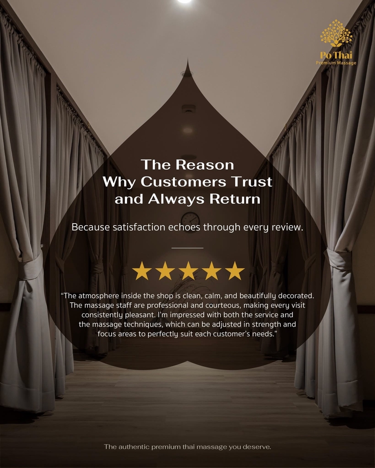 Po Thai Premium Massage สาขา ทองหล่อ -ร้านเปิด 10:00- 19:00 - ลูกค้าสามารถจองล่วงหน้าได้ค่ะ โดยทางร้านจะเก็บคิวไว้ให้ 10 นาที และจะขออนุญาตยกเลิกคิวในกรณีที่ลูกค้าไม่ได้มาตามเวลาที่จองไว้ค่ะ