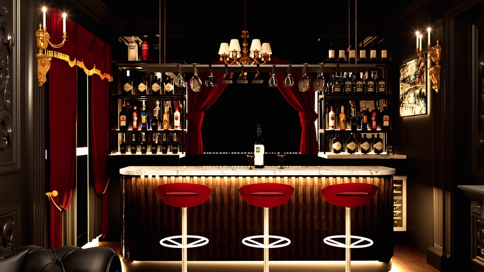 ออกแบบห้องนั่งเล่น Modern luxury style โทนสีดำแดง พร้อมบาร์ดื่มไวน์ luxury style ตกแต่งด้วยผนังโทนสีดำ ประดับเฟอร์เจอร์ สีดำ - แดง แต่งไฟสลัวเพื่อให้เข้ากับ concept งาน ขั้นตอนการทำงาน 1. แจ้งรายละเอียดงาน ระบุความต้องการในพื้นที่ต่างๆ ทั้งฟังก์ชั่นและสไตล์งาน 2. อัพเดทดราฟงานครั้งที่1 หากมีการแก้ไขสามารถแจ้งแก้ไขได้เลย 3. ส่งมอบงาน