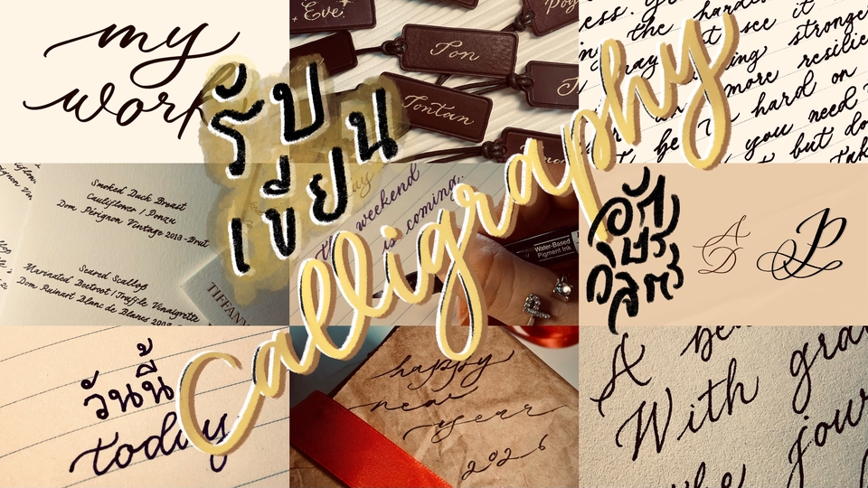 รับเขียน Calligraphy ออกแบบอักษรวิจิตร เขียนการ์ด ชื่อปกเพลง ไทโปปกนิยาย ด้วยลายมือ