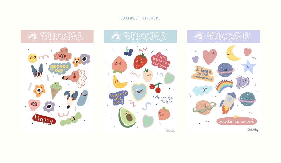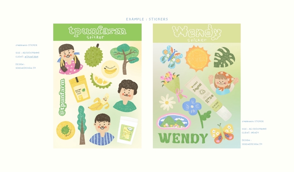 รับออกแบบสติกเกอร์ สไตล์น่ารัก งานทุกลายวาดบนโปรแกรม Procreate นะค้า 🎀 งาน giveaway 🍐 สติกเกอร์ตกแต่งทั่วไป 🥣 สติกเกอร์ติดกล่อง,ติดแก้ว, ติดบรรจุภัณฑ์ ***ใช้ในเชิงพาณิชย์ได้ - ขั้นตอนการจ้างงาน 1. ลูกค้าแจ้งรายละเอียดและลักษณะชิ้นงานที่ต้องการ (หากมีReference สามารถแนบส่งได้) 2. ลูกค้าชำระเงินตามใบเสนอราคาก่อนเริ่มงาน 3. ส่ง Update งานให้ลูกค้า สามารถแก้ไขได้ 2 ครั้ง 4. Final Artwork จะถูกส่งให้ลูกค้าทาง E-mail หรือ Google Drive เท่านั้น(ไฟล์ jpg, png, ai, psd)