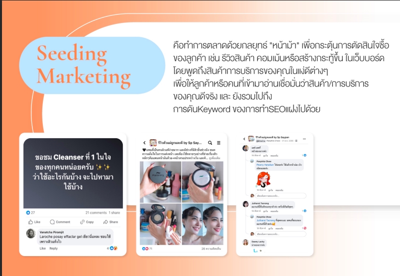 บริษัทเอเจนซี่โฆษณา และ Influencer รับทำการตลาดออนไลน์ทุกรูปแบบ ใน Facebook, Instagram , Tiktok , Twitter(X), Lemon8, Blog และ อื่นๆ มีคนแต่ละช่องทางมากกว่า 100 คน และยอด Follower 100 - 2M ขั้นตอนการทำงาน 1. แจ้งรายละเอียดแบรนด์และอินฟูลหรือ แพคเก็จที่ต้องการ 2. ตกลงทำใบเสนอราคาและเริ่มงานได้