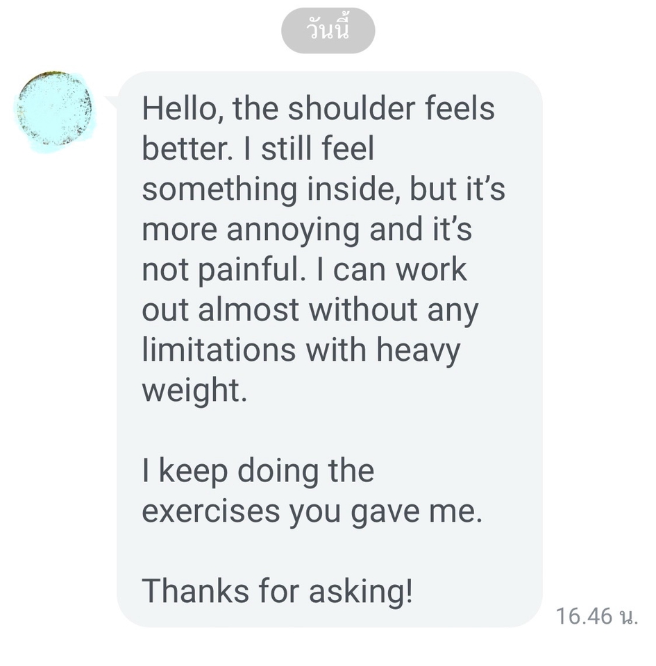 💆♂️ ปวดคอ บ่า ไหล่ หลัง… แต่ไม่มีเวลาไปคลินิก? ปรึกษานักกายภาพบำบัดออนไลน์แบบตัวต่อตัว ที่ช่วยให้คุณกลับมาใช้ชีวิตได้เต็มที่อีกครั้ง — ไม่ต้องเสียเวลารถติด ไม่ต้องรอคิวนาน แถมได้คำแนะนำเฉพาะคุณแบบละเอียดครบ! เหมาะสำหรับคนทำงานออฟฟิศ ผู้บริหาร ฟรีแลนซ์ เจ้าของธุรกิจ หรือสายออกกำลังกายที่ต้องการการดูแลอย่างมืออาชีพแต่ “เวลาเป็นสิ่งมีค่า” 🔍 เหมาะกับคุณถ้ามีอาการเหล่านี้ - ปวดคอ บ่า ไหล่ หลัง จากนั่งทำงานนาน หรือจากการออกกำลังกาย - ปวดร่วมกับอาการชา ตึง หรือยกแขนแล้วเจ็บ - เจ็บจากการเล่นกีฬา หรือออกกำลังกายผิดท่า - ต้องการฟื้นฟูหลังบาดเจ็บ หรือหลังผ่าตัด - ประเมินครบจบในครั้งเดียว ไม่ต้องเดาเองว่าเจ็บเพราะอะไร 🎯 สิ่งที่คุณจะได้รับ ✨ การวิเคราะห์อาการอย่างตรงจุด โดยนักกายภาพบำบัดผู้เชี่ยวชาญด้านกระดูกและกล้ามเนื้อ ✨ คำแนะนำเฉพาะบุคคล ท่าบริหาร/ท่าลดปวดที่ทำตามได้จริง เหมาะกับสภาพร่างกายของคุณ ✨ คู่มือดูแลตัวเองเบื้องต้น ทำได้ทันทีหลังจบการคุย และช่วยให้ดีขึ้นอย่างปลอดภัย 🧭 ขั้นตอนการทำงาน (ง่าย ใช้เพียงมือถือเครื่องเดียว) 1. Video Call เพื่อประเมินอาการ และซักประวัติอย่างละเอียด 2. ลูกค้าส่ง รูปท่าทางและรูปบริเวณที่เจ็บ สำหรับวิเคราะห์โครงสร้าง 3. ตรวจร่างกายเบื้องต้นผ่านวิดีโอ ด้วยท่า functional movement และการทดสอบที่ทำได้เอง 4. อธิบาย สาเหตุของอาการ และสิ่งที่ควรระวัง 5. ให้ คำแนะนำเบื้องต้น + ท่าบริหารเฉพาะตัว ที่นำไปใช้ได้ทันที สนใจทักแชทปรึกษาได้เลยค่ะ 💬💆♂️✨