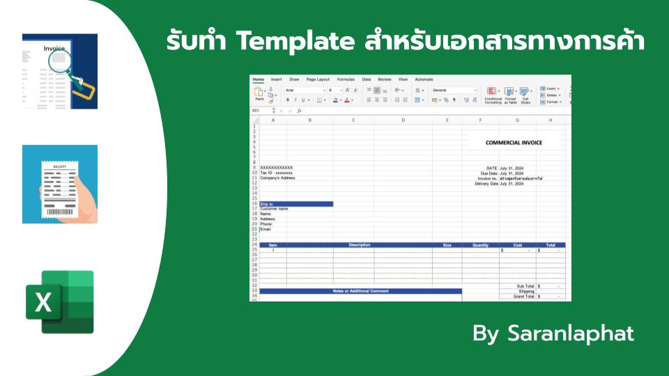 ทำ Invoice , Packing list , Receipt , Commercial Invoice Template