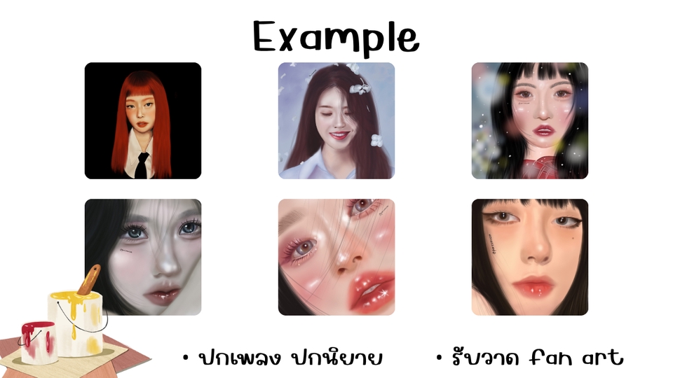 ✨ 🍀Portrait ดิจิทัลแนวสวยละมุน ที่สื่ออารมณ์ได้ลึกซึ้ง🍀 ✨ หากกำลังมองหาภาพวาดดิจิทัลที่ ถ่ายทอดตัวตน ความรู้สึก และความสวยงามแบบมีเอกลักษณ์ อยู่ใช่ไหม? Poriromrom.studio คือ ทีมศิลปินดิจิทัลที่เชี่ยวชาญการวาดภาพเสมือนจริงสไตล์ละมุน เน้นรายละเอียดอย่างประณีต ไม่ว่าจะเป็นแววตาที่มีชีวิต ผิวหน้าที่นุ่มนวล และแสงเงาที่เพิ่มความฝันให้กับทุกภาพ 🎨 ผลงานของ Poriromrom.studio เหมาะสำหรับ: • โปรไฟล์ภาพตัวเองในโซเชียล/เกม • ของขวัญวาระพิเศษ เช่น วันเกิด, วันครบรอบ • ภาพคู่/ภาพกลุ่มที่อยากเก็บไว้ในรูปแบบสุดพิเศษ • ปรับแต่งสไตล์ตามคำขอ เช่น เพิ่มความแฟนตาซี หรือความเรียบหรู 💬 ใส่ใจในทุกขั้นตอนของการทำงาน สื่อสารง่าย รับฟังทุกไอเดีย พร้อมส่งงานตรงเวลา สามารถไว้วางใจได้ว่าทุกภาพจะได้รับการดูแลอย่างมืออาชีพ 📩 สามารถติดต่อสอบถามก่อนเริ่มงานได้ ไม่ว่าจะมีภาพต้นแบบแล้ว หรือแค่อยากลองไอเดีย Poriromrom.studio ยินดีให้คำแนะนำฟรี ⸻ พร้อมใส่ลายน้ำ / ขนาดไฟล์สูงสุดตามต้องการ และสามารถเลือกรูปแบบไฟล์ที่สะดวกใช้งานได้ (JPEG/PNG เป็นต้น) ขั้นตอนการทำงาน 1. ลูกค้าแจ้งรายละเอียด •ส่งภาพต้นฉบับ (ภาพถ่ายที่ต้องการให้นำมาวาด) •ระบุสไตล์ภาพที่ต้องการ (เช่น แนวเรียลลิสติก / การ์ตูน / มินิมอล / สีโทนอุ่น-เย็น ฯลฯ) •ระบุขนาดภาพ / สัดส่วน / ความละเอียด (หากมี) •หากต้องการพื้นหลังพิเศษหรือองค์ประกอบอื่น ๆ กรุณาระบุให้ชัดเจน 2. เสนอราคา และระยะเวลา •ยืนยันขอบเขตงานและความต้องการ •เสนอราคาขั้นสุดท้ายและแจ้งเวลาส่งงาน 3. เริ่มวาดงาน •เริ่มวาดภาพจากข้อมูลและภาพต้นฉบับที่ลูกค้าให้ •ใช้เวลาตามที่ตกลงไว้ 4. ส่งงานร่าง (Sketch) ให้ลูกค้าตรวจสอบ •ลูกค้าสามารถเสนอแนะ/ขอปรับตำแหน่ง ท่าทาง องค์ประกอบ (1-2 ครั้ง) •หากทุกอย่างเรียบร้อย จะเริ่มลงสีและเก็บรายละเอียด 5. ส่งงาน Final •ส่งไฟล์ภาพที่เสร็จสมบูรณ์ให้ลูกค้า (.JPG / .PNG / ความละเอียดสูง 300 DPI) 6. ปิดงาน •หากไม่มีการแก้ไขเพิ่มเติม งานจะถือว่าเสร็จสมบูรณ์)