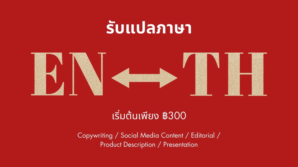 [IELTS 6.5] รับแปลภาษา EN <=> TH ทุกประเภท Copywriting / Social Media Content / Editorial / Product Description / รับทำ Presentation รับงานด่วน! แก้ไขงาน ปรับรูปแบบภาษาให้เหมาะตามรายละเอียดงาน รับประกันคุณภาพ ส่งงานตรงกำหนดเวลา