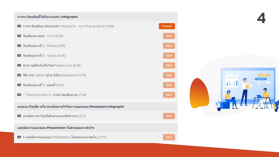 หลักสูตรคอร์สออนไลน์ PowerPoint Infographic For Business (เรียนผ่านคอมพิวเตอร์ มือถือ แท็บเล็ต ได้ไม่จำกัด) เรียนผ่านเว็บไซต์คอร์สออนไลน์ เรียนได้ตลอด ไม่มีวันหมดอายุ เรียนผ่านมือถือ แท็บเล็ต คอมพิวเตอร์ ชำระเงินแล้วเข้าเรียนได้ทันที เรียนซ้ำกี่รอบก็ได้ ไม่มีวันหมดอายุ สงสัย ติดปัญหา สอบถามอาจารย์ได้ตลอด เวลาเรียนทั้งหมด 7 ชั่วโมง 40 นาที เข้าใจความหมายของ Infographic คุ้นเคยกับเครื่องมือในการทำ Powerpoint Infographic การหาวัตถุดิบในการทำ Infographic การหาไอเดียตัวอย่างในการออกแบบ 5 เทคนิคการออกแบบอย่างมืออาชีพ ตะลุย Workshop Powerpoint Infographic เก็บตกเทคนิคลับเพิ่มประสิทธิภาพการทำงาน Powerpoint โดยตลอดการเรียนจะคั่นให้ทำ Workshop เพื่อฝึกใช้งานจริงตามบทเรียน ไม่ว่าคุณจะมี “พื้นฐาน” หรือ “ไม่มีพื้นฐาน” ก็สามารถเรียนจนทำสไลด์ออกมาอย่าง “มืออาชีพ” ได้ ใช้ PowerPoint 2016 ขึ้นไปก็สามารถเรียนได้ สอนโดยอาจารย์ผู้รับออกแบบ Presentation เป็นอาชีพ ผลลงานมากว่า 400 งาน ลิ้งค์งานรับออกแบบใน Fastwork https://fastwork.co/user/pptboy/presentation-1314 รายละเอียดราคาเพิ่มเติม ชำระเงินแล้วเข้าเรียนได้ทันที เรียนซ้ำกี่รอบก็ได้ ไม่มีวันหมดอายุ สงสัย ติดปัญหา สอบถามอาจารย์ได้ตลอด ขั้นตอนการทำงาน 1. ทักแชท สอบถาม 2. ชำระเงินผ่านทาง Fastowork 3. รับ User Password และลิ้งค์เข้าเรียนได้ทันที 4. หลังเข้าห้องเรียน กดปิดงานใน Fastwork และรีวิวการเรียน