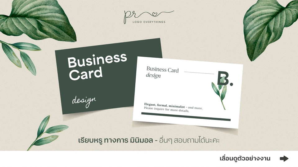 ออกแบบนามบัตร - Business card บัตรสมาชิก - บัตรสะสมแต้ม - การ์ขอบคุณ - ใบรับประกัน - เรียบหรู ทางการ มินิมอล น่ารัก เป็นมิตร หรืออื่นๆ สามารถสอบถามได้นะคะ "รวมไฟล์ต้นฉบับ (.Ai) พร้อมส่งโรงพิมพ์" สนใจแจ้งรายละเอียด หรือมีข้อสงสัยอะไร สามารถทักแชทมาพูดคุยได้เลยนะคะ :) -------------------------------------------- ขั้นตอนการทำงาน 1. แจ้งรายละเอียดงาน 2. คุยข้อตกลง และกดใบเสนอราคา 3. ใช้เวลาทำงาน 2 วันหลังชำระค่าบริการ*ไม่รวมวันอาทิตย์ 4. ส่งงานให้เลือก/ แก้ไขงานได้ 3 ครั้ง (ยืดหยุ่นได้) 5. ส่งงาน final (ไฟล์ Ai, Pdf และ Jpeg)
