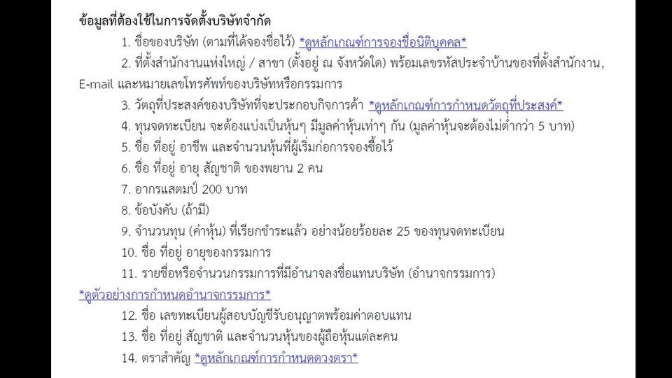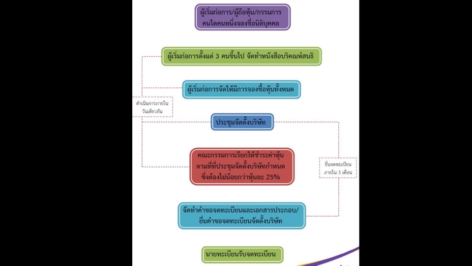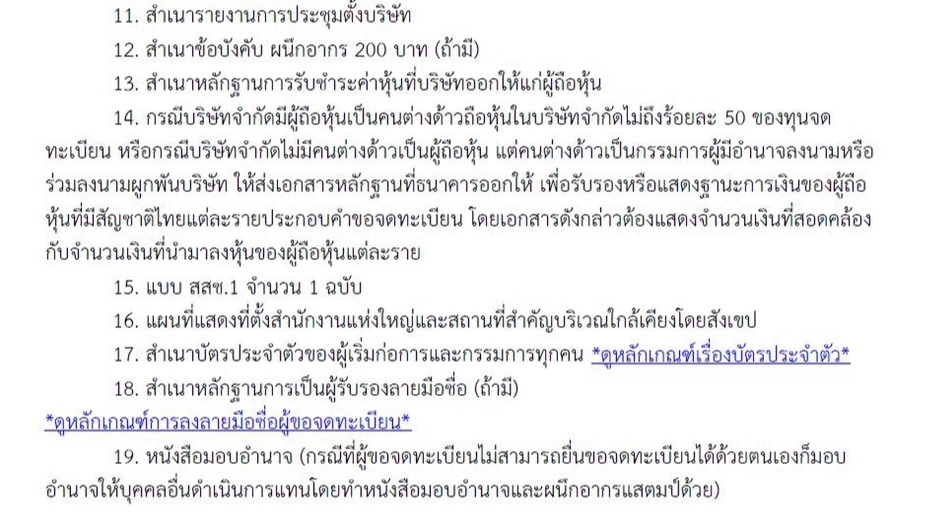 ฿3,000- ให้คำแนะนำปรึกษาในการจดทะเบียนต่างๆ - พิมพ์และจัดเตรียมเอกสารในการจดทะเบียน - ดำเนินการจดทะเบียนการจัดตั้งห้างหุ้นส่วน บริษัท ทะเบียนพาณิชย์ และอื่นๆ รวมทั้งการเปลี่ยนแปลงต่างๆ ของห้างหุ้นส่วนและบริษัท - ดำเนินการจดทะเบียนภาษีมูลค่าเพิ่ม รวมทั้งการเปลี่ยนแปลงต่างๆ - ดำเนินการขึ้นทะเบียนนายจ้าง ประกันสังคม (ราคาค่าบริการเริ่มต้นยังไม่รวมค่าธรรมเนียม)