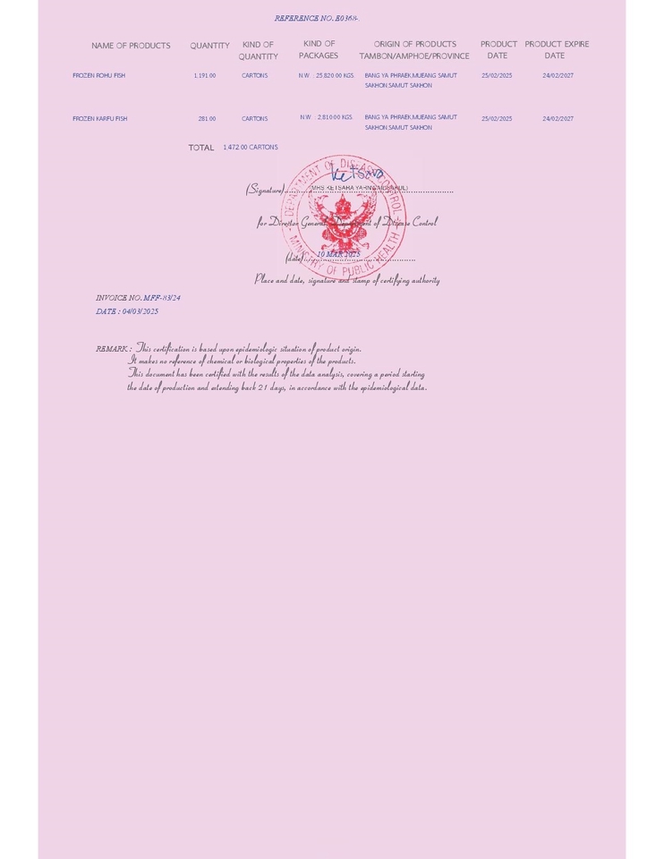 ลงทะเบียนและยื่นขอ ใบรับรองแหล่งผลิตแหล่งกำเนิดอาหารปลอดโรค (Pink Form) เป็นเอกสารรับรองจากกองควบคุมโรค กระทรวงสาธารณสุข เพื่อสร้างความเชื่อมั่นให้กับประเทศผู้นำเข้าว่าสินค้าอาหารของไทยมีคุณภาพและปลอดภัยจากโรคอหิวาตกโรค ขั้นตอนการทำงาน 1. มอบอำนาจกระทำการแทน 2. จัดส่งเอกสารและรายละเอียดเพื่อตรวจสอบ