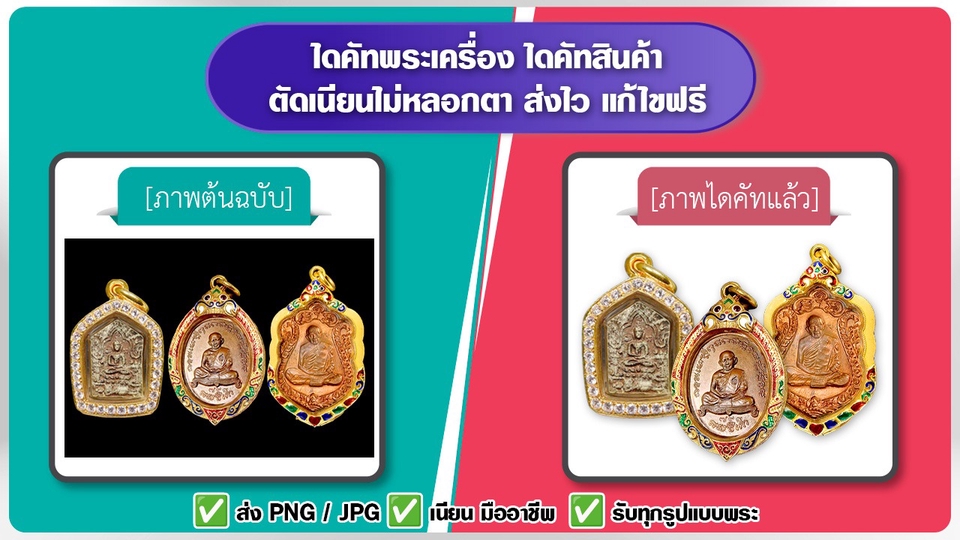🟧 ไดคัทพระเครื่อง PNG พร้อมใช้ 🟩 ตัดพื้นหลังเนียน ไม่หลอกตา 🟨 เหมาะขาย Shopee / Facebook / ทำแคตตาล็อก 🟧 มืออาชีพ ส่งไว พร้อมใช้งาน