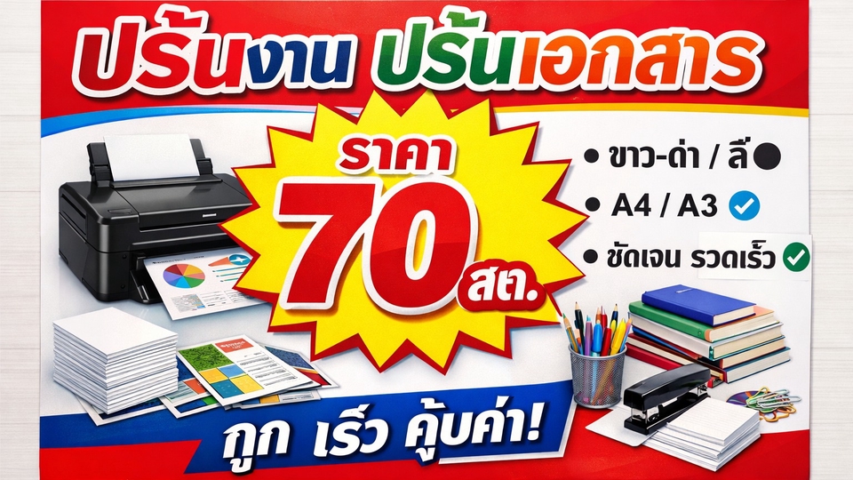 รับปริ้นเอกสาร ปริ้นงาน ขาวดำ/สี ด้วยระบบเลเซอร์ปริ้นเตอร์ ปริ้นรายงาน คู่มือ หนังสือ พร้อมเข้าเล่มทุกชนิด เข้าเล่มสันกาว รับปริ้นเอกสารออนไลน์ จัดทำหนังสือต่างๆ คู่มือประชุม หนังสือจากไฟล์ pdf ไม่จำกัดจำนวนเล่ม ปริ้นขาวดำ หน้าหลัง เริ่มต้นหน้าละ 70สต. ปริ้นสี หน้าละ 2-10 บาท วิธีการสั่งงาน - ทักแชทหาทางร้าน - ส่งไฟล์ให้ทางร้าน แจ้้งรายละเอียด - ทางร้านประเมินราคา แจ้งลูกค้า - ลูกค้าชำระค่าบริการ - ร้านจัดทำและจัดส่ง สนใจใช้้บริการ ทักแชท ส่งไฟล์ แจ้งรายละเอียดได้เลยครับ