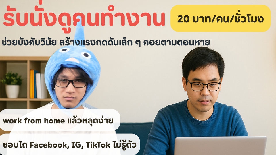 รับนั่งดูคนทำงาน(จริงจัง) ชั่วโมงละ 20 บาท | ช่วยโฟกัส เลิกไถโซเชียล
