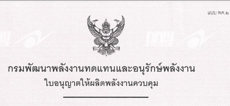 ตรวจรับรองใบอนุญาตผลิตพลังงานควบคุม (พค.2)