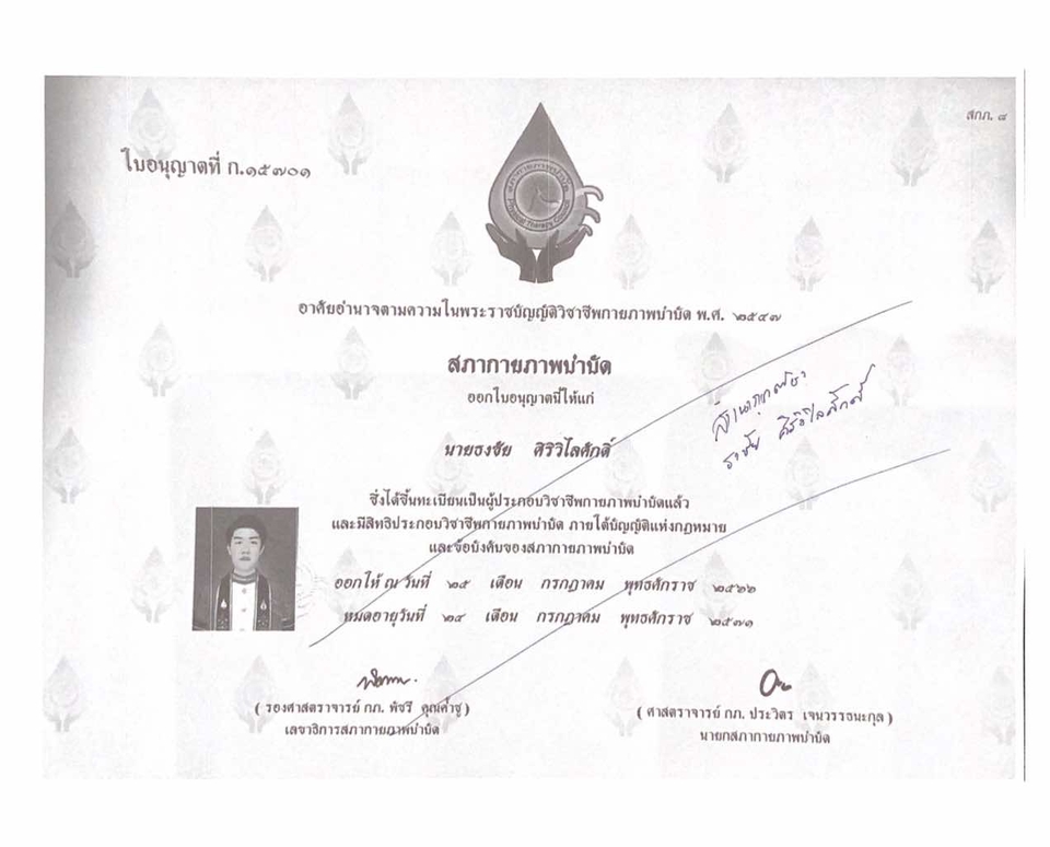 บริการการรักษากายภาพบำบัด ฟื้นฟูอาการบาดเจ็บที่เกิดจาก โรคทางกระดูกและกล้ามเนื้อ ข้อต่ออักเสบ ผู้ป่วยติดเตียง อัมพฤกษ์ อัมพาต กล้ามเนื้ออ่อนแรง กระดูกสันหลังคด ปรับบุคลิก กายภาพบำบัดหลังผ่าตัด หรือบาดเจ็บจากการออกกำลังกายและกีฬา สำหรับผู้ที่ไม่สะดวกเดินทาง โดยเราสามารถไปหาคุณได้ ให้บริการรับทำกายภาพบำบัดนอกสถานที่ ขั้นตอนการทำงาน 1. ซักประวัติ 2. ตรวจร่างกาย 3. วินิจฉัยโรค 4. การรักษา