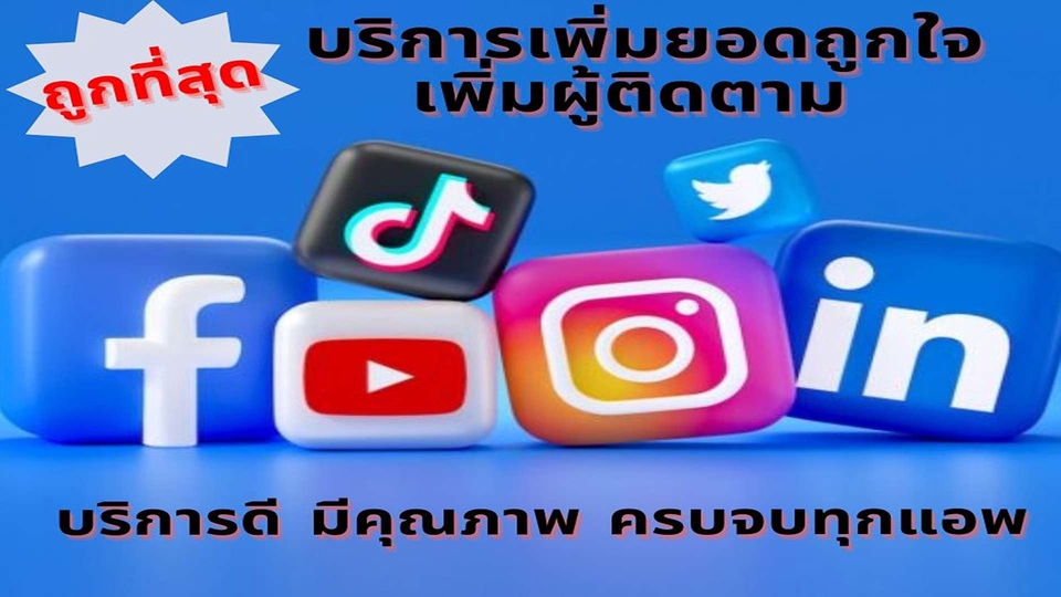 Tiktok - เพิ่มยอดติดตาม - เพิ่มยอดวิว - เพิ่มยอดหัวใจ - เพิ่มยอดแชร์ / บันทึก Facebook - เพิ่มยอดถูกใจ/ติดตาม เพจ - เพิ่มยอดไลค์โพสต์ - เพิ่มยอดติดตามบัญชีส่วนตัว - เพิ่มยอดวิว Reels - เพิ่มยอดคอมเมนต์ - เพิ่มยอดแชร์ - เพิ่มยอดรีวิวเพจ 5 ดาว Instagram - เพิ่มยอดติดตาม - เพิ่มยอดวิว Reels/Story - เพิ่มยอดถูกใจ Reels/Posts - เพิ่มยอด Comment ข้อความ/Emoji - Auto ไลค์/วิว/comment - บริการคนไทย ( Premium ✨) Youtube - เพิ่มยอดวิว (คุณภาพสูง) - เพิ่มยอด Subscriber - Youtube Shorts เพิ่มยอดวิว - เพิ่มยอดไลค์ - เพิ่มยอด Comment Twitter ( X ) - เพิ่มยอดรีทวิต - เพิ่มยอดจำนวนคนชมทวิต - เพิ่มยอดติดตาม ขั้นตอนการทำงาน 1. สอบถาม/พูดคุย รายละเอียดบริการที่ลูกค้าต้องการครับ 2. รอใบเสนอราคาให้กับคุณลูกค้าครับ 3. ลูกค้าชำระค่าบริการครับ 4. งานครบตามจำนวนที่เราตกลงกัน ผมทำการส่งงานให้ครับ 5. รบกวนรีวิวให้กันและกันเพื่อเป็นกำลังใจครับ