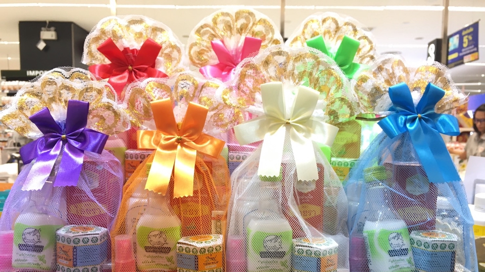 ใส่บาตรตอนเช้ากับพระที่ชนบท ด้วยถุงสังฆทานตามวันเกิด