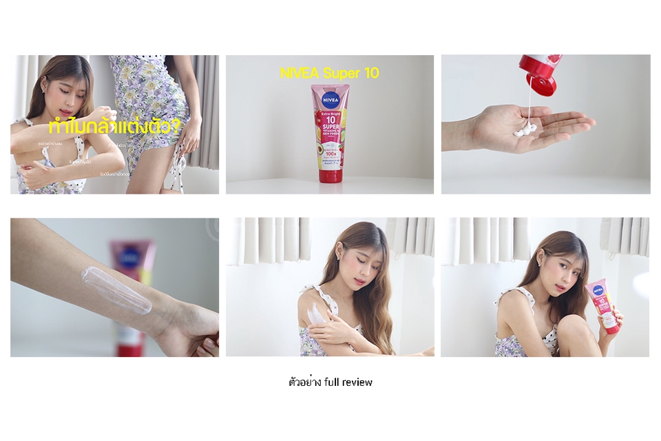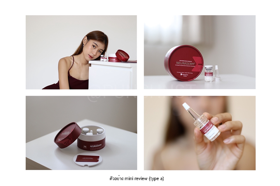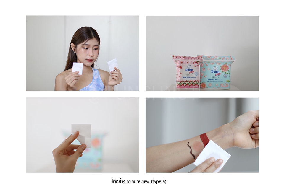 ฿2,000- ภาพนิ่ง 6-8 ภาพ ( ประกอบด้วย Pack shot/ สวอชสินค้า/ Before-After/ รูปคู่สินค้า) - ดราฟต์รีวิวสินค้า (เขียนบรรยายรีวิวประกอบภาพ ฉบับเต็ม) - ไฟล์ภาพต้นฉบับและลิ้งค์กระทู้ ลูกค้าสามารถนำไปใช้ต่อได้ *ช่องทาง: เลือกลงเว็ปบล็อก 1 ช่องทาง Pantip/Jeban/Cosmenet/Sistacafe ฯ + แชร์ลิ้งค์กระทู้ลง Facebook ส่วนตัว หมายเหตุ: ปรับแก้งานได้ 2 ครั้ง + ระยะเวลาการดำเนินงาน: 7-14 วัน (หลังจากได้รับสินค้า) **ขึ้นอยู่กับประเภทและระยะเวลาทดลองสินค้าเพื่อจัดทำ Before - After**