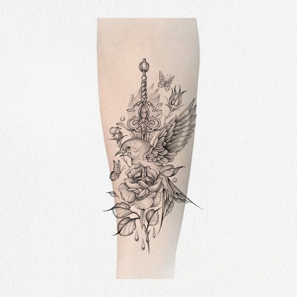 แนวงานที่รับออกแบบ : Blackwork, fineline, dot, minimal เพราะทุกรอยสักมีความหมายและเป็นสิ่งที่จะอยู่ติดตัวไปตลอด ก่อนทำการร่างแบบ เราจึงใส่ใจและให้ความสำคัญกับการพูดคุยแลกเปลี่ยนไอเดีย รับฟังเรื่องราว ความรู้สึกต่างๆ ที่ต้องการจะสื่อผ่านรอยสัก หลังจากนั้นจะเริ่มร่างแบบและส่งให้ลูกค้าดูก่อนเพื่อแก้ไขค่ะ ซึ่งสามารถแก้ไขได้จนกว่าจะได้แบบที่ชอบมากที่สุดค่ะ เมื่อแบบร่างผ่านแล้ว เราจะลงเส้นและเงากับปากกาและเก็บรายละเอียดงานก่อนส่งเป็นไฟล์ (.jpg) ให้ดาวโหลดรูปที่เสร็จสมบูรณ์ค่ะ (งานที่วาดเป็นการวาดมือทั้งหมดนะคะ) ขั้นตอนการทำงาน 1. คุยแลกเปลี่ยน/เล่าไอเดีย, เรื่องราว, ความรู้สึกต่างๆ ที่ต้องการสื่อผ่านรอยสักที่ต้องการให้ออกแบบ 2. เมื่อได้รายละเอียดครบแล้ว จะทำการร่างแบบ และส่งแบบร่างให้ลูกค้าดูก่อนเพื่อสั่งแก้ไข ซึ่งสามารถแก้ไขแบบร่างได้จนกว่าจะได้แบบที่ลูกค้าชอบที่สุดค่ะ 3. เมื่อแบบร่างผ่านแล้ว จะลงเส้นและเงาด้วยปากกา และทำการเก็บรายละเอียดงานอีกครั้ง 4. ส่งไฟล์งานที่เสร็จเรียบร้อยแล้วให้ดาวน์โหลดเป็นไฟล์สกุล.jpg ค่ะ