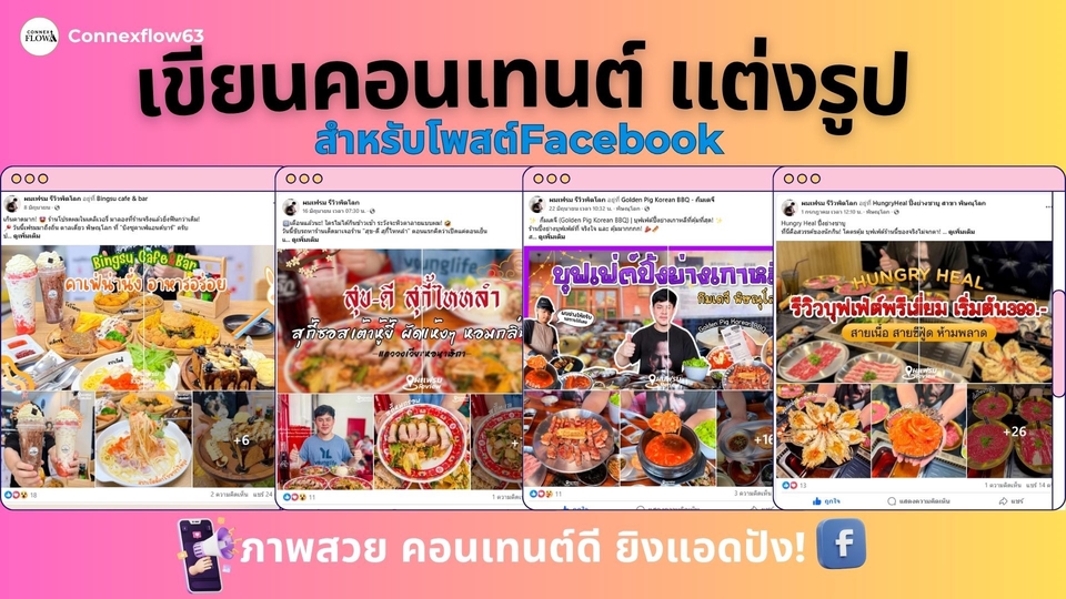 รับเขียนคอนเทนต์รวมแต่งรูป สำหรับโพสต์บนเพจfacebook ร้านอาหาร ธุรกิจเสริมความงาม ร้านเสื้อผ้า