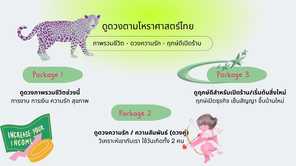 Package 1: ดูดวงภาพรวมชีวิตช่วงนี้ การงาน การเงิน ความรัก สุขภาพ