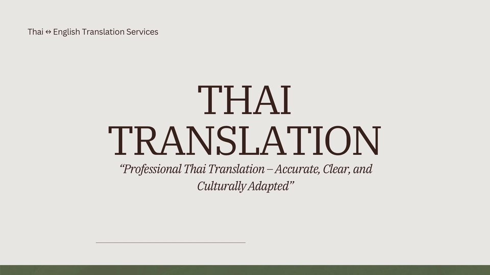 บริการแปลภาษาไทย - อังกฤษ โดยนักแปลฟรีแลนซ์ • แปลเอกสาร บทความ คอนเทนต์ เว็บไซต์ และงานทั่วไป • ภาษาถูกต้อง อ่านลื่นไหล เข้าใจง่าย • ตรวจทานเรียบร้อยก่อนส่งงาน • ส่งงานตรงเวลา พร้อมแก้ไขตามคำขอ Thai - English Freelance Translation Service • Accurate, clear, and natural translation • Proofread before delivery • On-time work with revisions available