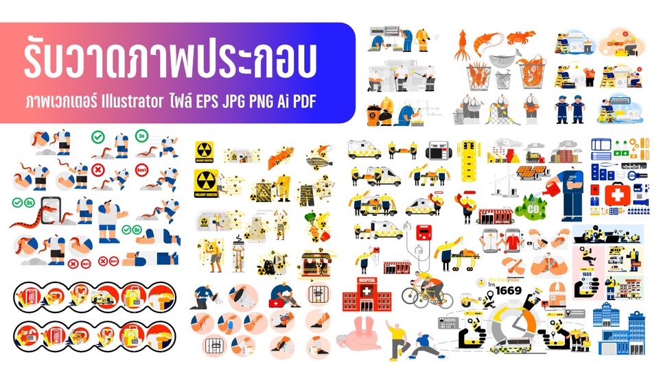 รับงานวาดภาพประกอบตามสั่ง ภาพเวกเตอร์ งาน illustrations เล่าเรื่องด้วยภาพ ภาพสื่อความหมาย ไฟล์ PNG JPG EPS Ai PDF ภาพการ์ตูน เริ่มต้น 500฿
