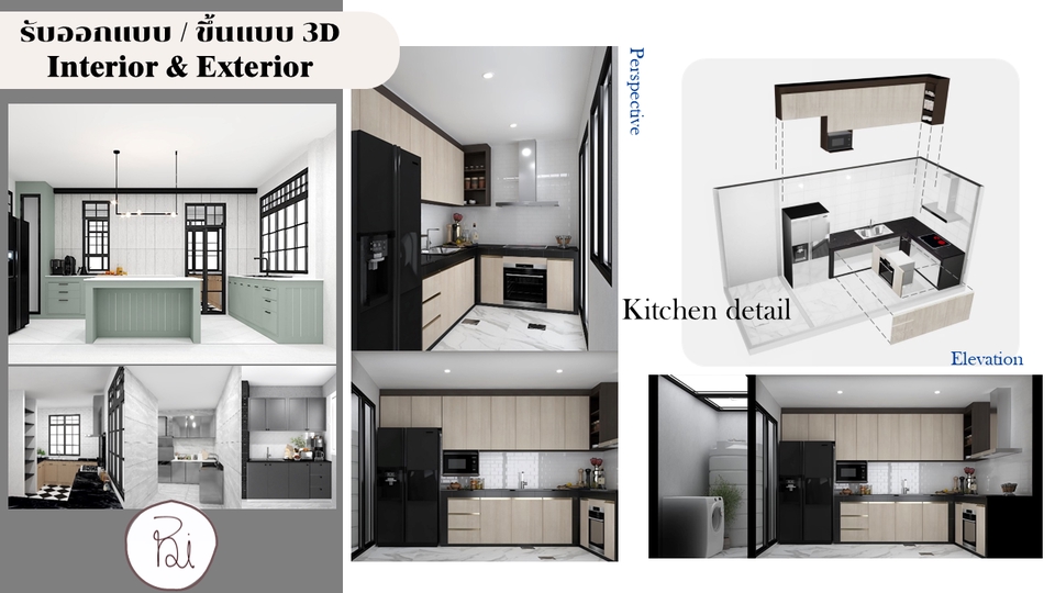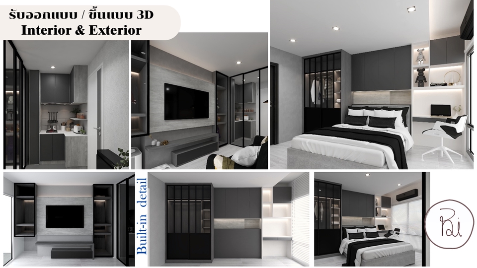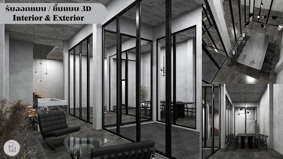 รับออกแบบตกแต่งภายใน ร้านอาหาร ร้านกาแฟ และบ้านพักอาศัย โดยเริ่มจากรับบรีฟจากลูกค้า วางแปลน function การใช้งานคร่าวๆ พร้อม mood / theme ของงานออกแบบ เมื่อแบบตรงตามความต้องการลูกค้าแล้วก็ทำภาพ 3D perspective ส่งมอบแบบให้ลูกค้า ขั้นตอนการทำงาน 1. พูดคุยความต้องการของลูกค้า นำเสนอไอเดียคร่าวๆ 2. ลูกค้าตกลง / เริ่มทำแบบ แปลน mood theme 3. ส่งแบบครั้งที่1 ( mood + แปลน2D + ภาพ 3D ที่แสดง function และการตกแต่ง) / ปรับแก้ไข 4. ส่งมอบงาน