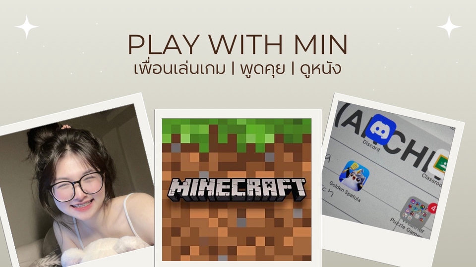 🎮 รับทำงานทั่วไปทุกอย่างค่ะ เหงา ไม่มีคนชวนเล่น เบื่อเล่นคนเดียว ไม่มีเวลาดูสัตว์เลี้ยง น้องหมาน้องแมว หรือจะเป็นน้องๆสายพันธุ์ไหนก็เอาอยู่ สวัสดีค่ะ มินคือ “ Everything ” 💡คุยง่ายงานละเอียดใส่ใจทุกโมเม้น 📌 ติดต่อสอบถามได้ 24 ชม. ยินดีตอบค่ะ 💖 เหงา เศร้า เบื่อ อยากระบาย… ก็มีคนรับฟังนะคะ บรีฟได้เลยค่าต้องการแบบไหน