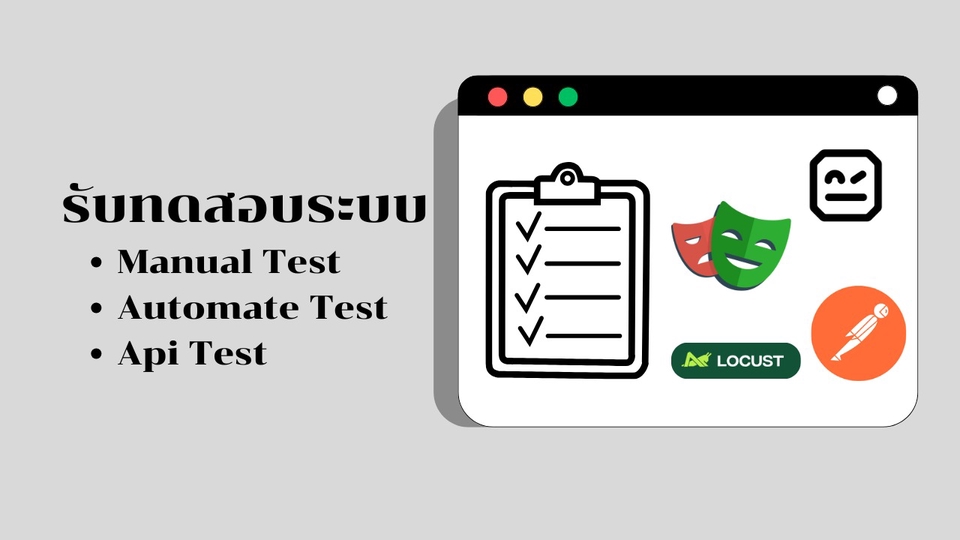 ##บริการรับทดสอบระบบ Web และ API 1. ทดสอบอัตโนมัติ (Automation Testing) - ด้วย Playwright สำหรับ Web และ API - ด้วย Robot Framework + Selenium สำหรับ Web 2. ทดสอบ API ด้วย Postman 3. Manual Testing พร้อมจัดทำรายงาน Bug อย่างละเอียด ## ขั้นตอนการทำงาน: 1. พูดคุยและเก็บรายละเอียดความต้องการของระบบ (Requirement) 2. ออกแบบ Test Case ตามฟังก์ชันการทำงาน 3. ดำเนินการทดสอบระบบ และ เก็บผลการทดสอบอย่างเป็นระบบ 4. หากพบ Defect หรือ Bug จะจัดทำ เอกสารบันทึกปัญหา (Defect Log) เพื่อแจ้งลูกค้า 5. จัดทำรายงานสรุปผลการทดสอบ และส่งมอบงานให้ลูกค้า หมายเหตุ :ราคาจะขึ้นอยู่ความละเอียดงานและระยะเวลา แต่สามารถต่อรองราคาได้