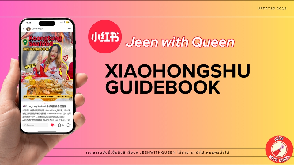 - • 5.รับฟรี “คัมภีร์ Xiaohongshu by Jeenwithqueen” (E-book) มูลค่า 1,500 บาท
