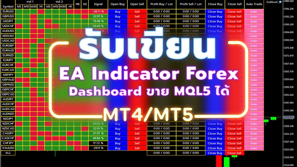 รับเขียน Ea Forex Dashboard ระบบซื้อขายอัตโนมัติ MT4 MT5 -ผ่านมาตรฐานเว็บ mql5 สามารถเอาลงขายเว็บ mql5 ได้ -ใช้งานได้ทุกคู่เงิน ทุก timeframe -ระบบ lock ea -ตั้งเวลาการทำงานของระบบ -เทรดหลายคู่เงินพร้อมกัน -หน้่า Dashboard แสดงรายละเอียดต่างๆ -การแจ้งเตือน telegram Line -เทรดหลบข่าว ให้หยุดการทำงานช่วงมีข่าว -ปุ่มปิดออร์เดอร์ หรือตั้งค่าการทำงานแบบอื่นๆ -indicator ส่ง signal -การส่งสัญญารเทรด binary option IQ Option ขั้นตอนการทำงาน 1. ท่านส่งรายละเอียด/เงื่อนไขที่ต้องการ 2. ประเมินราคา และตกลงราคากัน 3. ส่งใบเสนอราคา ชำระเงิน 4. เริ่มงาน เขียนอีเอตามรายละเอียดที่ตกลงกัน 5. ระยะเวลาในการเขียนอีเอ 1-3 วัน 6. ส่งไฟล์ อีเอนามสกุล .ex4 กำหนดวันหมดอายุ 7. แก้ไขฟรีหากอีเอทำงานไม่ตรงตามเงื่อนไข 8. ส่งมอบไฟล์งาน อีเอ นามสกุล ex4 ปลดล็อควันหมดอายุ