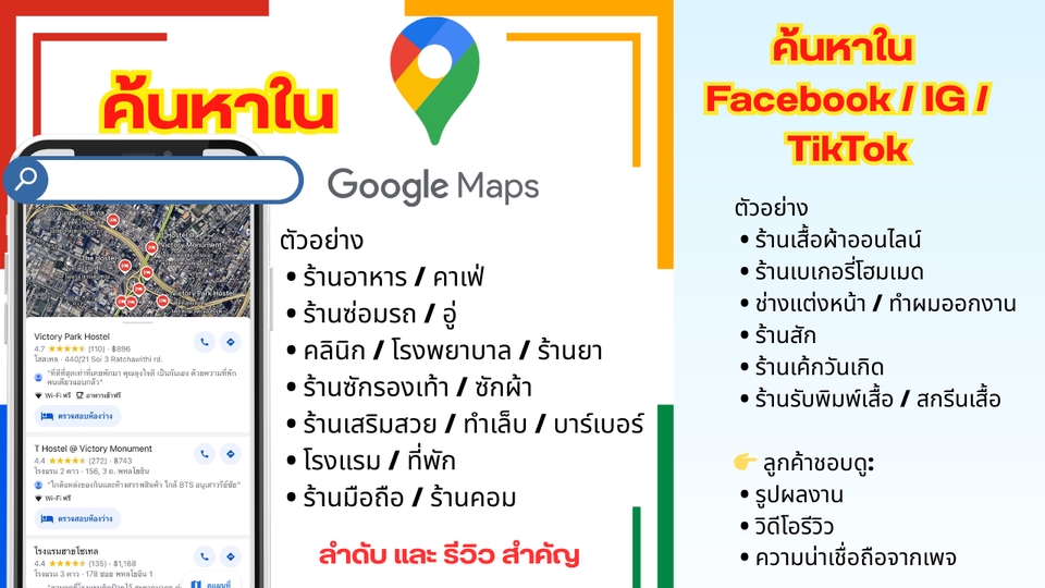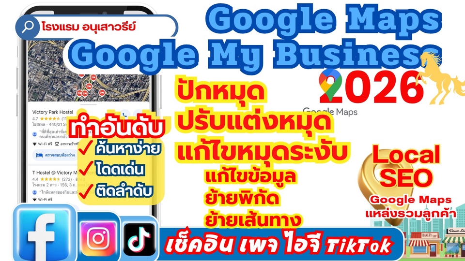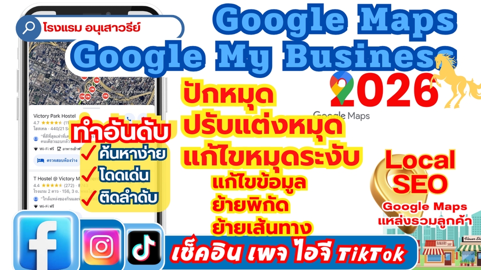ปักหมุด Google Maps สร้างเช็คอิน Facebook IG Tiktok ย้ายพิกัด ย้ายเส้นทาง แก้หมุดระงับ ทำอันดับ