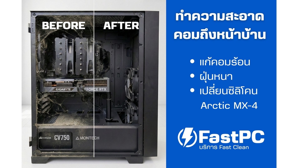 รับทำความสะอาดคอมพิวเตอร์ PC ถึงบ้าน (On-site) แก้คอมร้อน ฝุ่นหนา เปลี่ยนซิลิโคน Arctic MX-4