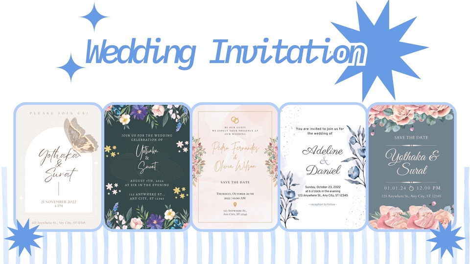 รายละเอียดงาน ออกแบบการ์ดบัตรเชิญ : ออกแบบการ์ดงานแต่งงานและงานมงคล หลากหลายรูปแบบ ตามใจลูกค้า แบบเรียบง่าย มินิมอล ดอกไม้หรือแบบสดใส โดยใช้โปรแกรม Canva เป็นหลัก และใช้ Ai มาเสริมบางส่วน ขั้นตอนการทำงาน 1. พูดคุยเพื่อเข้าใจความต้องการและขอข้อมูลที่ต้องใช้ในงาน 2. สร้างแบบร่างตัวอย่าง 3 แบบ และปรับปรุงตามคำแนะนำ ใช้เวลา 1-2 วัน 3. เริ่มงานออกแบบ ใช้เวลาประมาน 2-3 วัน 4. ส่งงานให้ตรวจสอบและแก้ไขได้ทั้งหมด 3 ครั้ง 5. ส่งมอบงานพร้อมไฟล์ที่ตกลงไว้ สิ่งที่ต้องการจากผู้ว่าจ้าง 1. ข้อมูลและเนื้อหาที่เกี่ยวข้องที่ต้องใส่ในงาน 2. โลโก้หรือภาพประกอบ (ถ้ามี) 3. ตัวอย่างงานที่ลูกค้าคิดไว้ในหัว (ถ้ามี) ข้อกำหนดและเงื่อนไข ไม่รับงานที่เกี่ยวข้องกับการพนันและสิ่งผิดกฎหมาย