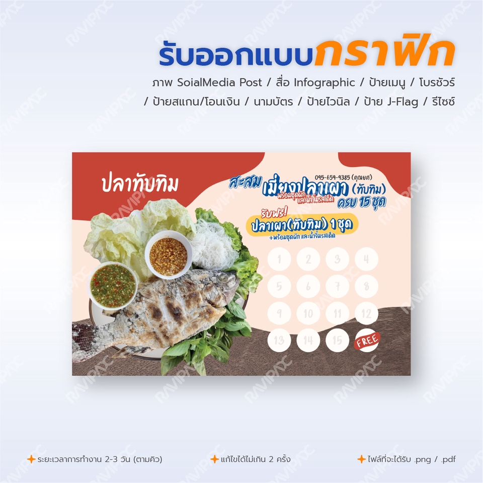 รับออกแบบนามบัตร หรือบัตรสะสมแต้ม ป้ายสแกน โอนเงิน ขนาด 5.5x9 cm หรือตามขนาดที่กำหนด - ระยะเวลาการทำงาน 2-3 วัน (ตามคิว) - ลูกค้าสามารแก้ไขได้ ไม่เกิน 2 ครั้ง - หากต้องการไฟล์ .ai มีค่าใช้จ่ายเพิ่มเติม ขั้นตอนการทำงาน 1. คุยรายละเอียดงาน (หากลูกค้ามีสไตล์ หรือโทนสีที่ต้องการแจ้งได้เลยค่ะ) 2. เริ่มงาน และส่งให้ลูกค้า