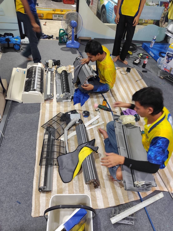 📍เขตพื้นที่ให้บริการ บ้านฉาง, ระยอง, **นอกเขตพื้นที่โปรดทักหาแอดมินก่อนนะค่ะ** การนัดหมาย จองคิวล่วงหน้า 1-5 วัน (กรณีหน้างานเป็นคอนโดทางนิติสามารถให้เข้าบริการ วันเสาร์ ได้หรือไม่?) 📍นอกเขตพื้นที่ให้บริการ บวกเพิ่ม 200-500 บาท ตามระยะทาง ล้างแอร์ขั้นต่ำ 2 ตัว ) แอดมินจะตอบกลับโดยเร็วที่สุด ในเวลาทำการ วันจันทร์ - เสาร์ เวลา 08:30 -18.00 น. *หยุดวันอาทิตย์* เงื่อนไขการให้บริการ -ขออนุญาตใช้ห้องน้ำ/บริเวณลานซักล้าง เพื่อล้างคราบสิ่งสกปรกระหว่างการดำเนินการล้างแอร์ -ขออนุญาตถ่ายรูปหน้างานเพื่อใช้เป็นข้อมูลยืนยันการให้บริการ -ในกรณีที่ไม่สามารถทำความสะอาดคอยล์ร้อนได้ เช่น คอยล์ร้อนอยู่นอกอาคารสูง/คอยล์ร้อนติดตั้งในจุดที่ไม่สามารถทำความสะอาดได้ โดย ทีมช่างจะทำการฉีดล้างภายนอกแทน -ถ้าหน้างานตำแหน่งแอร์อยู่ติด ชิดฝ้า/กำแพง ที่ไม่สามารถถอด พัดลมโพรงกระรอก ออกมาได้ ซึ่งอาจส่งผลให้อุปกรณ์เสียหาย ช่างจะไม่ทำการถอดออกมาล้าง แต่จะใช้การฉีดน้ำล้างแทน -ระยะเวลาทำความสะอาดไม่เกิน 90 นาที (ขึ้นอยู่กับจำนวนเครื่อง และความสกปรกของแอร์ตามการใช้งาน) -รับประกันผลงานล้างแอร์ 30 วัน หลังการให้บริการ เครื่องปรับอากาศจะต้องไม่มีอาการน้ำหยดหรือน้ำรั่ว ในระยะเวลาที่รับประกัน -กรณีที่ช่างเข้าไปให้บริการแต่ไม่สามารถล้างได้ เช่น ช่างไปถึงหน้างานแล้วแต่นิติบุคคลของคอนโด/หมู่บ้านไม่ยอมให้เข้าทำงานเนื่องจากเป็นวันหยุด ขอสงวนสิทธิ์ในการคืนเงินให้กับลูกค้าทุกกรณี -กรณีคอยล์ร้อน หรือ คอยล์เย็นสูงกว่า 3 เมตรขึ้นไปหรือพื้นที่ไม่เหมาะสม เช่น คอนโดที่ไม่มีระเบียงหรือไม่สามารถปีนออกไปแกะล้างได้ ทางบริษัทจะขอสงวนสิทธิ์ฉีดล้างโดยไม่แกะล้างคอยล์ร้อน ขั้นตอนการทำงาน 1. ทักแชทเพื่อนัดหมายวันเวลา สถานที่ 2. ร้านสร้างใบเสนอราคากับให้ลูกค้า 3. ลูกค้าชำระค่าบริการ 4. ให้บริการลูกค้าตามที่ตกลงกันไว้ 5. หลังจบงาน ลูกค้ากดอนุมัติงานเป็นอันเสร็จสิ้น