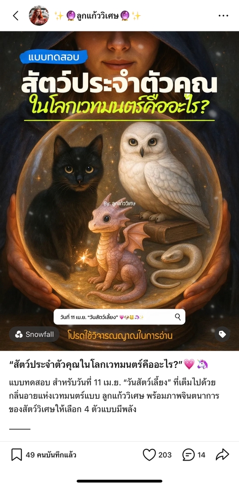 แนวภาพ: เหมือนจริง + เวทมนตร์ + พลังลี้ลับ + สวยงามน่าดึงดูด (เหมาะสำหรับเพจ/โซเชียลสายมู) เหมาะกับใคร? • เจ้าของเพจสายมู, ร้านขายของขลัง, แบรนด์น้ำหอมมูเตลู, นักพยากรณ์, หรือสายคอนเทนต์ที่ต้องการเพิ่มพลังดึงดูดในงานภาพ • คนที่อยากให้โพสต์ของตัวเอง “มีมนต์ขลัง” จนคนหยุดเลื่อน! ขั้นตอนการทำงาน 1. สิ่งที่ลูกค้าจะได้รับ: • ไฟล์ภาพ JPG/PNG ขนาดชัดเจน พร้อมโพสต์ • สไตล์เสมือนจริง + เวทมนตร์ + โทนสีตามต้องการ • สามารถระบุเทพเจ้า / พลัง / คาถา / ธาตุ / สัญลักษณ์ที่ต้องการได้ 2. บริการเสริม (Add-on): • เพิ่มคำอธิบายคำทำนาย +100 บาท/โพสต์ • ทำเวอร์ชั่นขนาด Reels หรือ Stories เพิ่ม +50 บาท/ภาพ • ทำภาพเวอร์ชั่นไม่มีพื้นหลัง +50 บาท/ภาพ
